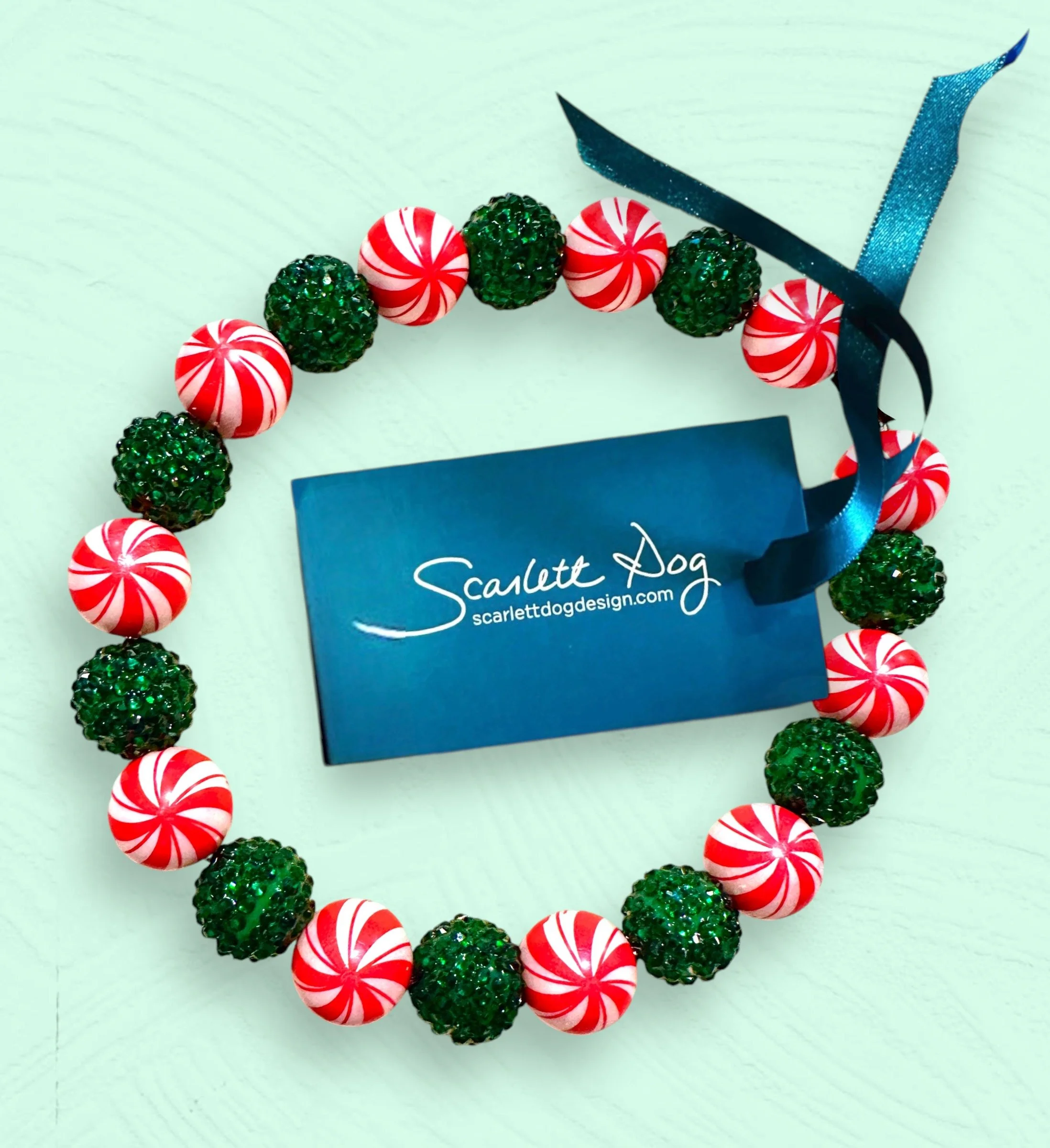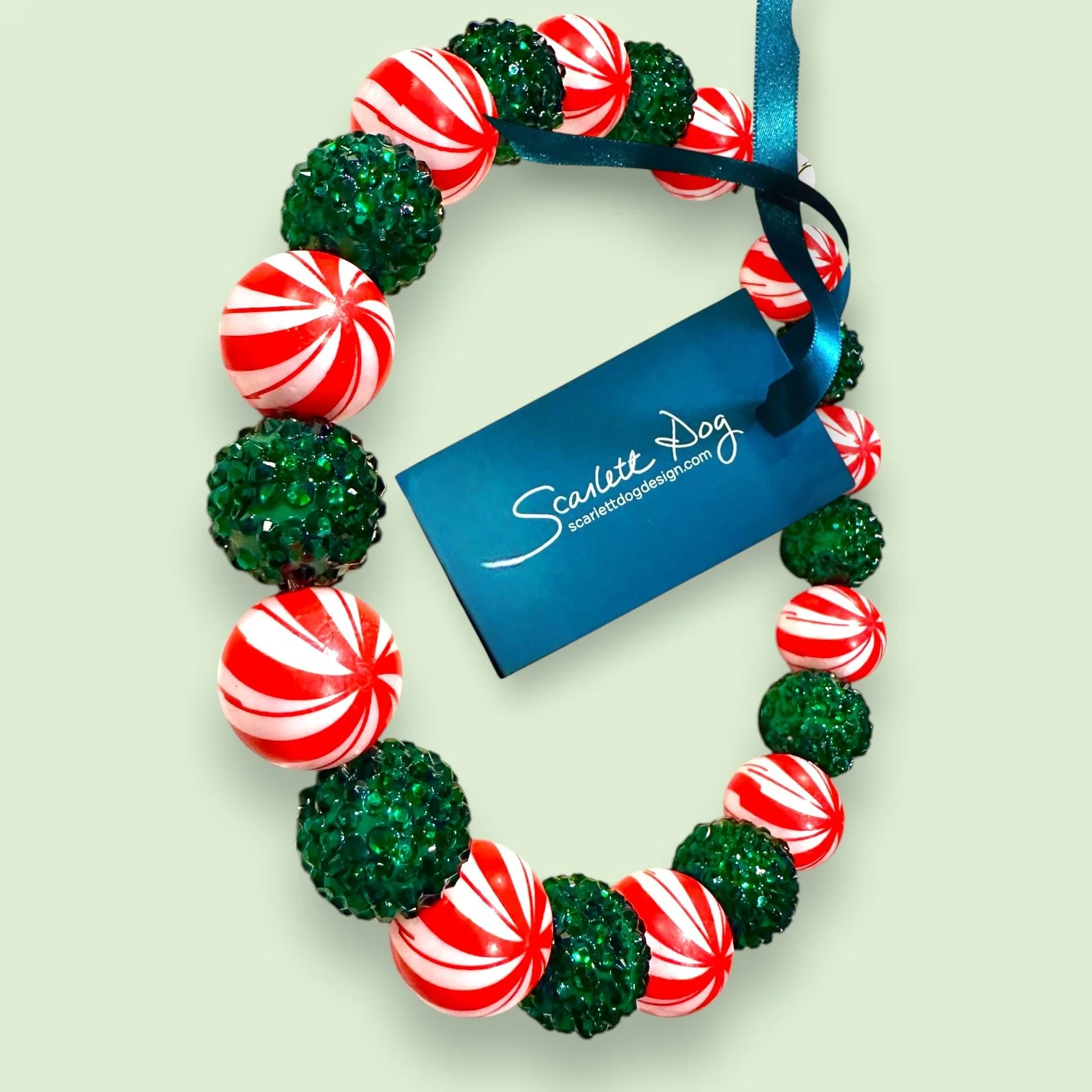 Peppermint Twist is a holiday favorite! We have two chunky versions, this is the sparkly version with peppermint printed acrylic beads interspersed with evergreen rhinestone beads. Sizes start at 11”. Want a version that’s just and red, choose our Peppermint Twist - Pearly version. For smaller sizes, choose our Peppermint Twist mini necklace.