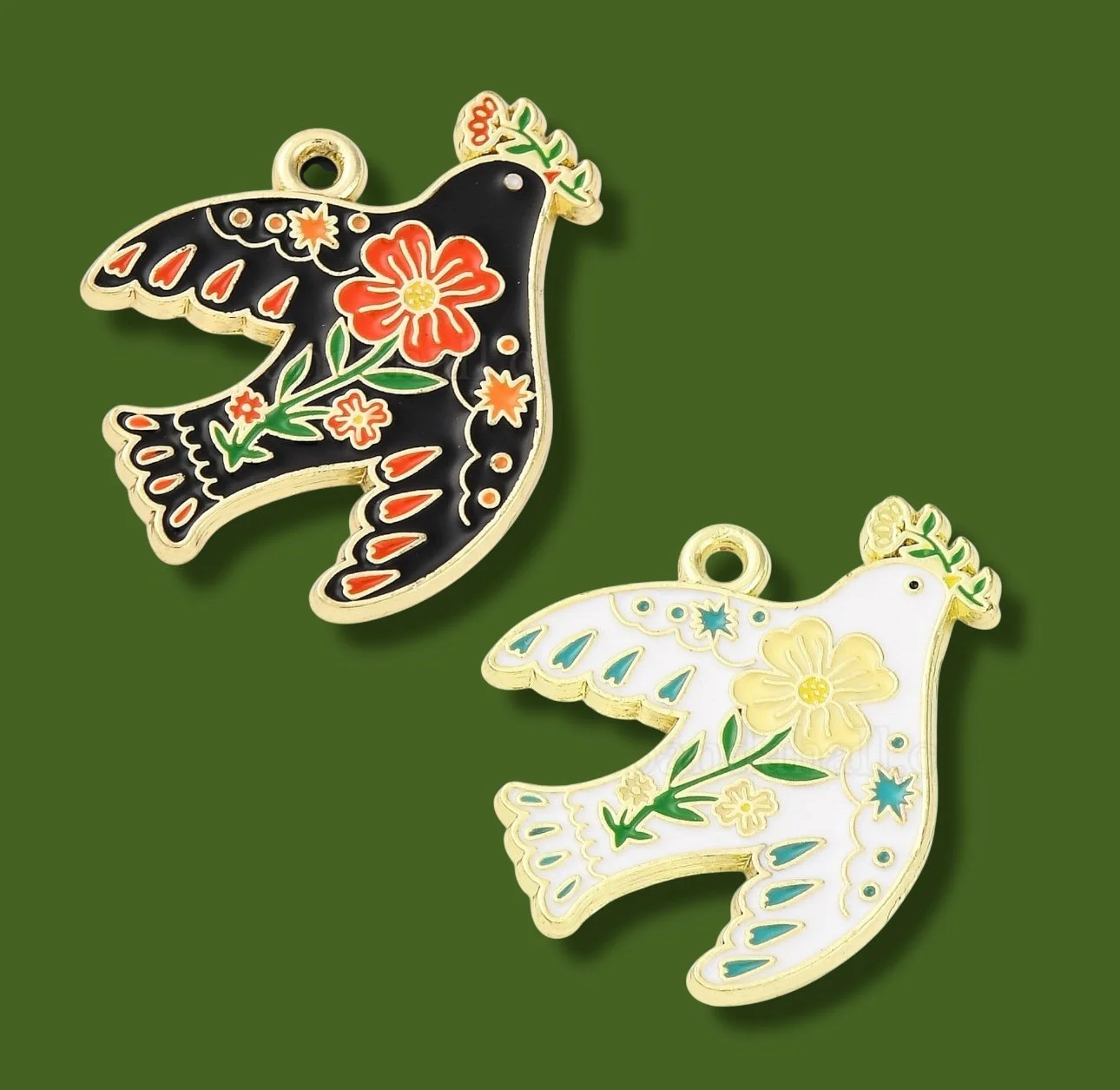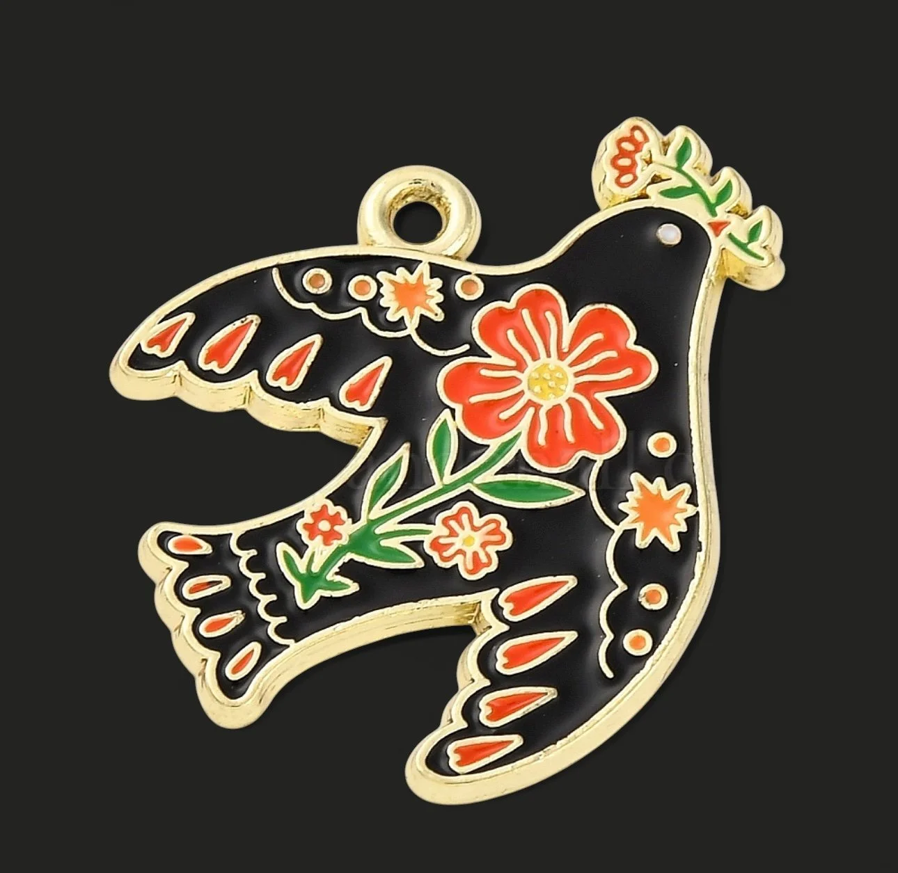 Enamel Bird with CZ details (18k Gold Plate)